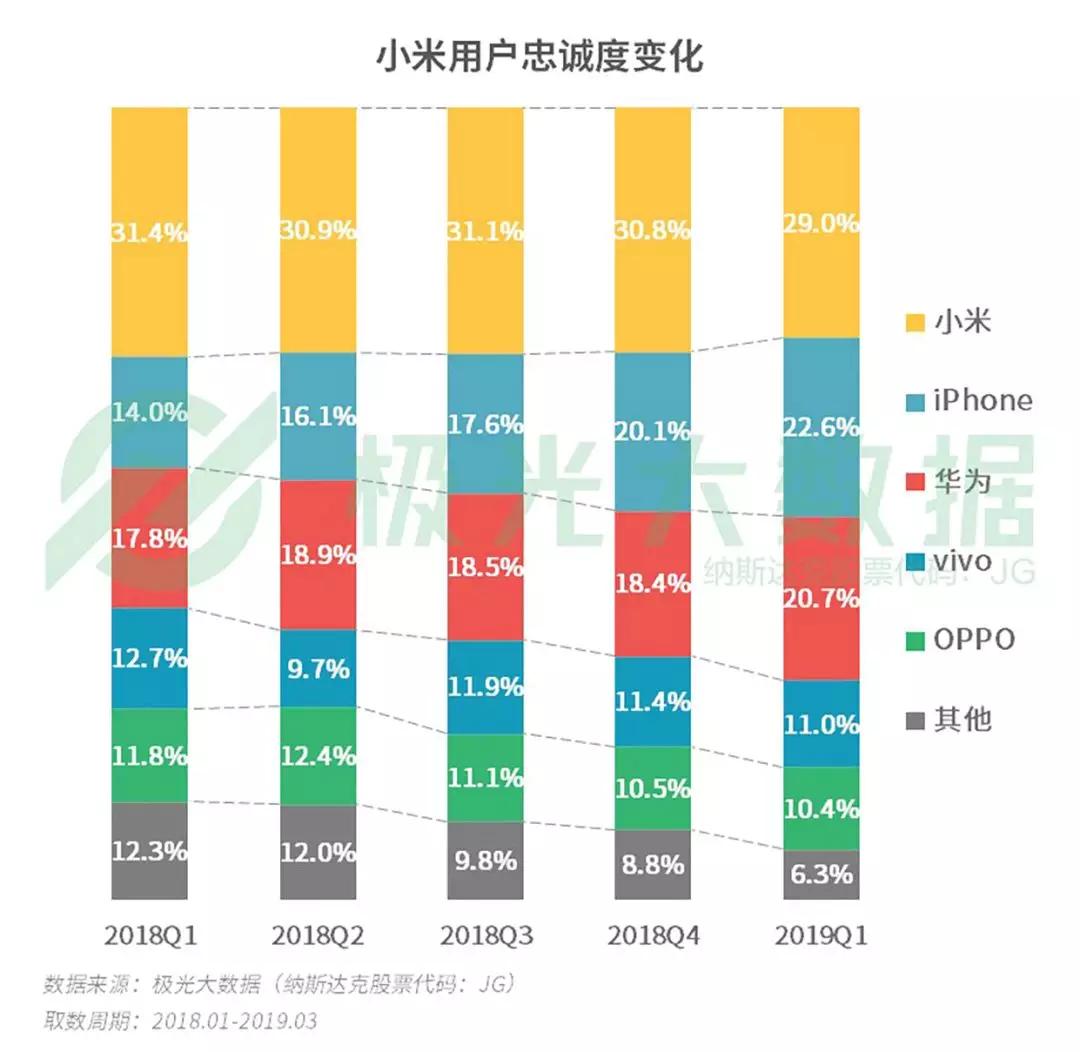 极光大数据显示,Q1的小米换机用户转向iPhone的比例上升至22.6%,达一年内新高