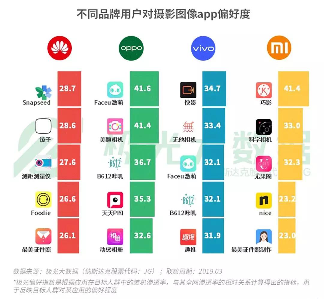 OV用户是美颜相机的重度用户,摄影图像偏好度top 5 app中各上榜3款