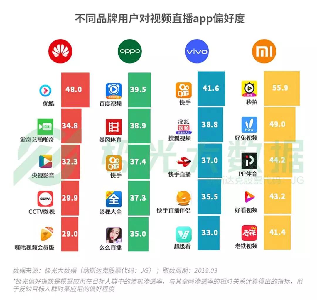 极光大数据显示,OPPO、vivo和小米用户均对短视频app有一定偏好,其中快手受众最广