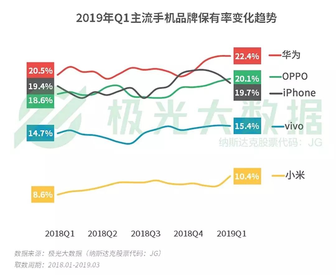 2019年Q1智能手机行业研究:苹果保有率跌至第三,华为和OPPO名列头两位