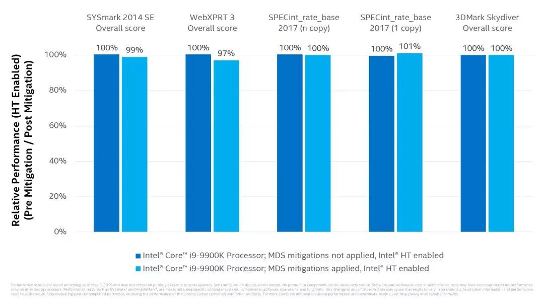 基于此,英特尔也正面回应道:"关于微架构数据采样(MDS)安全问题,我们近期的很多产品已经在硬件层面得以解决了,包括很多第 8 代和第 9 代英特尔酷睿处理器、以及第 2 代英特尔至强可扩展处理器系列。