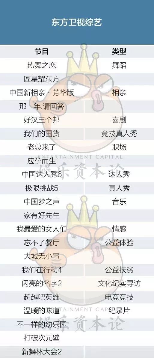 根据娱乐资本论(ID:yulezibenlun)得到的资料,《奔跑吧3》冠名刊例价达5亿,整体招商金额在10亿左右,另一档王牌节目《王牌对王牌》则在5亿上下。而东方卫视的新综艺数量虽然达到16个,但刊例最高价依然在《极限挑战5》上。按照其2亿特约的价格,冠名价格应该在4-5亿之间,总体金额与《奔跑吧》不相上下。
