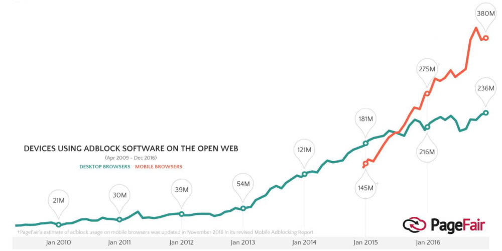 2017年初,谷歌就日益增长的广告拦截现状做出了一个出人意料的绝望决定,其决定在Chrome浏览器中添加自家的广告拦截器。但除了因为屏蔽竞争对手广告引来更多的反垄断监管外,谷歌此举于事无补。谷歌很快就明白,即使其投放的广告质量略有改善,广告拦截数量也会不可避免地继续上升。
