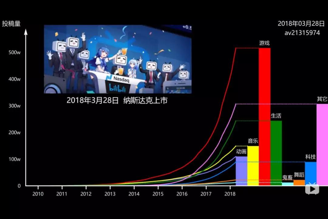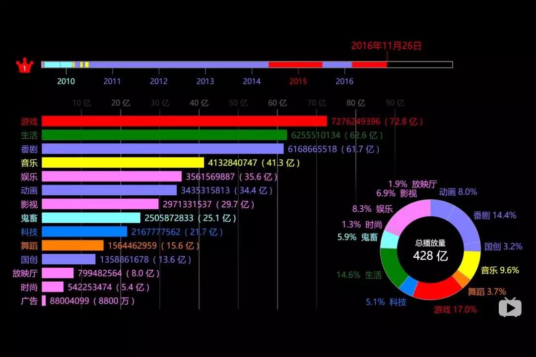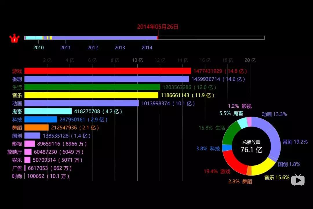 除了09年建立早期的鬼畜区,14年的时侯,B站上的游戏区是第一个在播放量是上反超了番剧区UGC内容社区。