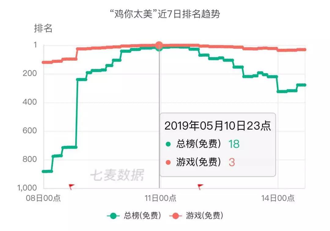 《鸡你太美》上线于4月23日,一个月后排名升至App Store免费游戏榜第3名。