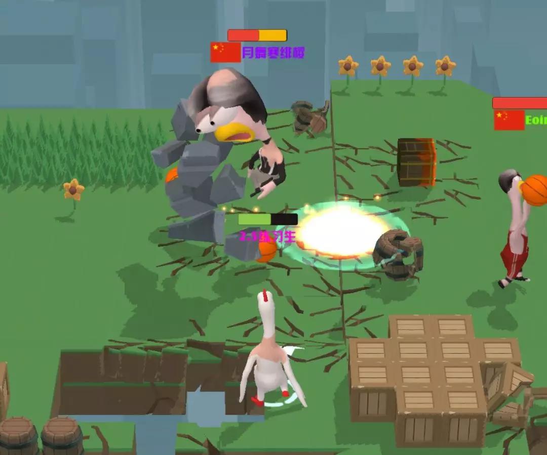 释放手指时,角色会丢出手中以鸡蛋为外形的“炸弹”功能物,攻击其他玩家,被炸到的玩家会被击飞,飞出地图外即出局。