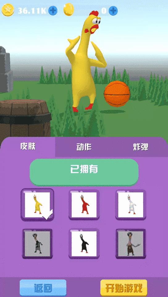 进入游戏后,用户可以在外观选项卡里选择多种人物和炸弹的皮肤,其中就包括了以蔡徐坤为外形的角色皮肤和篮球,两者都需要通过观看一定数量的广告才可以获得。