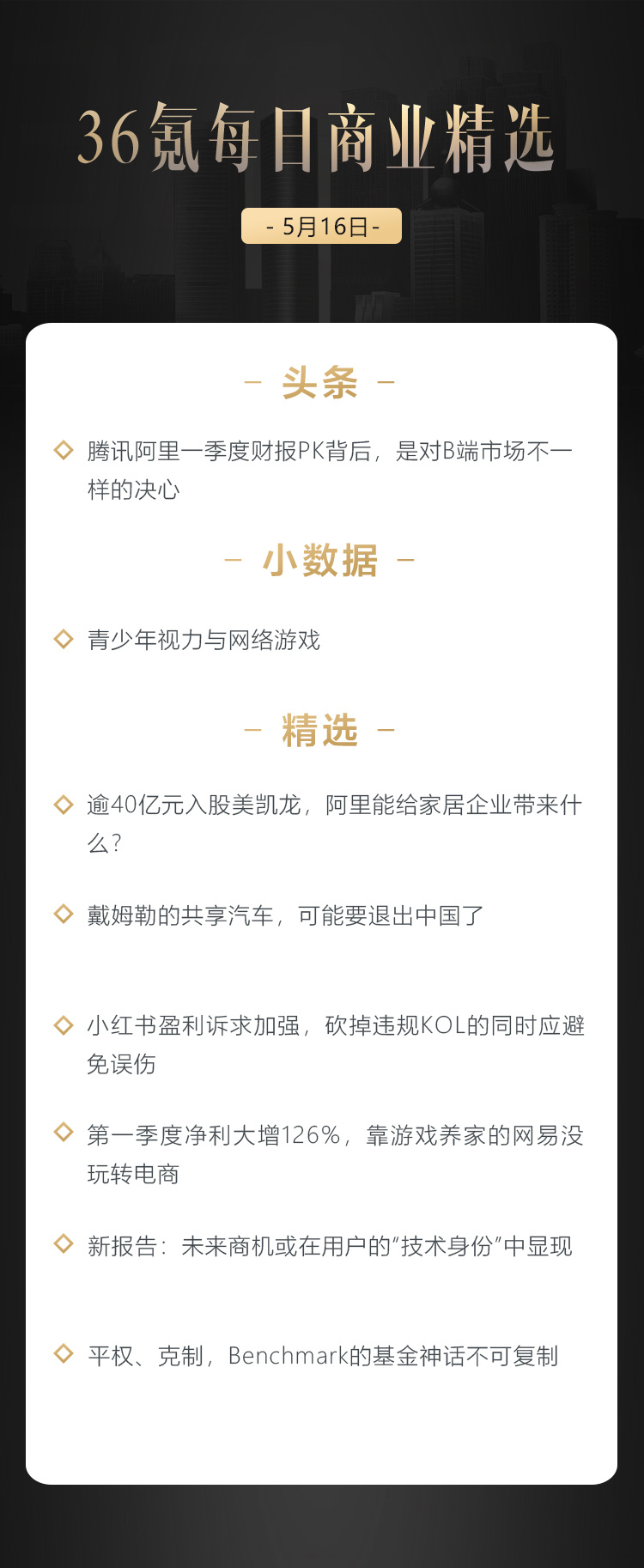 本文来自36氪付费栏目《36氪每日商业精选》——5月16日