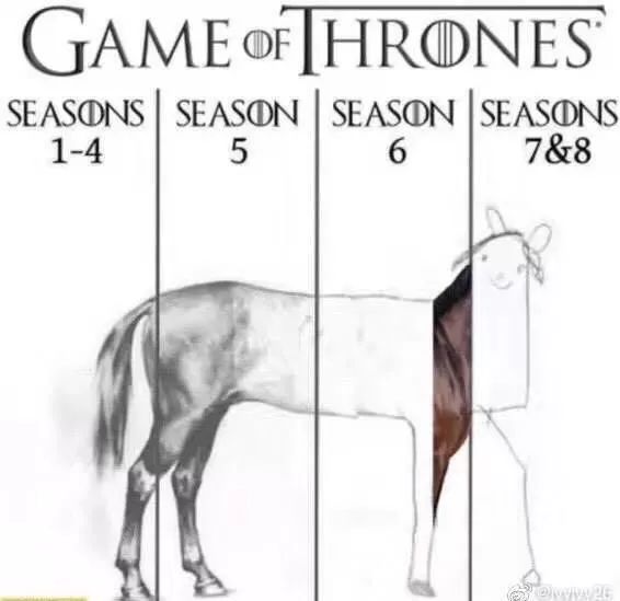 但是由于《权力的游戏》原著作者乔治·R·R·马丁缓慢的更新速度,剧组从第六季开始不得不脱离了原著剧情,完全交给了两位编剧自己来自由发挥,然后就出现了第八季这样大崩盘的结果。