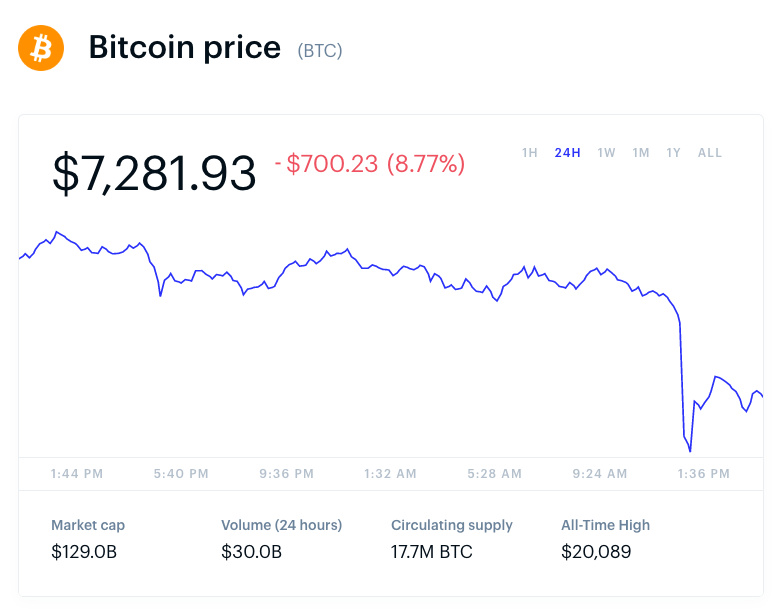 今天上午,加密货币市场开始下跌回调。目前BTC全球均价暂报7340美元,24H跌幅10%。