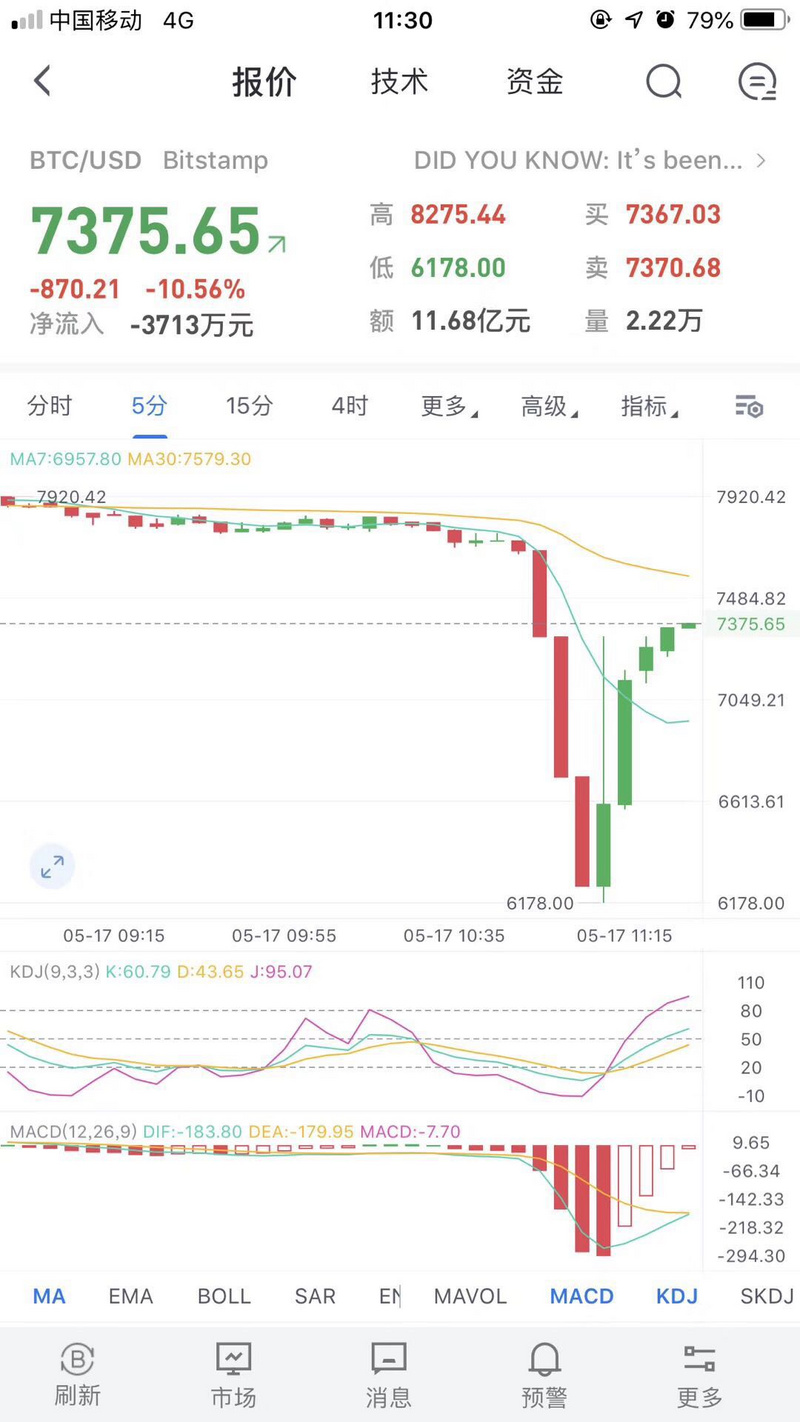 1Token分析师Panda认为,Bitstamp上BTC价格领跌的主要原因在于:一是砸盘主场在bitstamp,半小时砸了5000个BTC;二是Bitstamp的深度不够深。