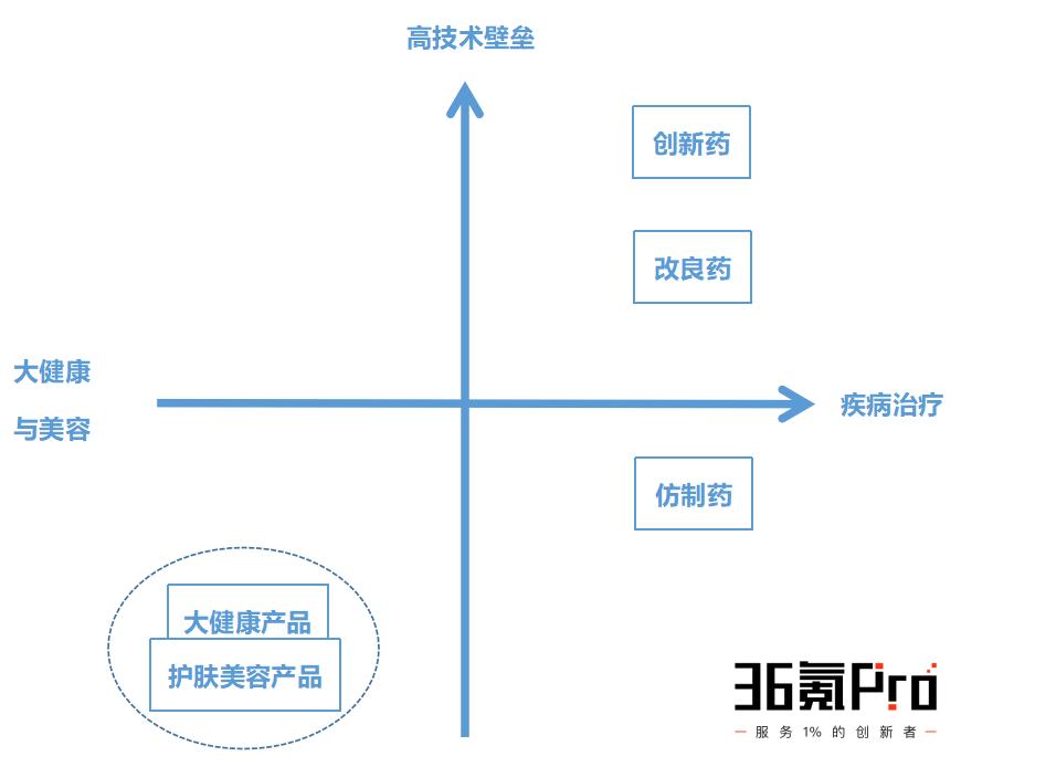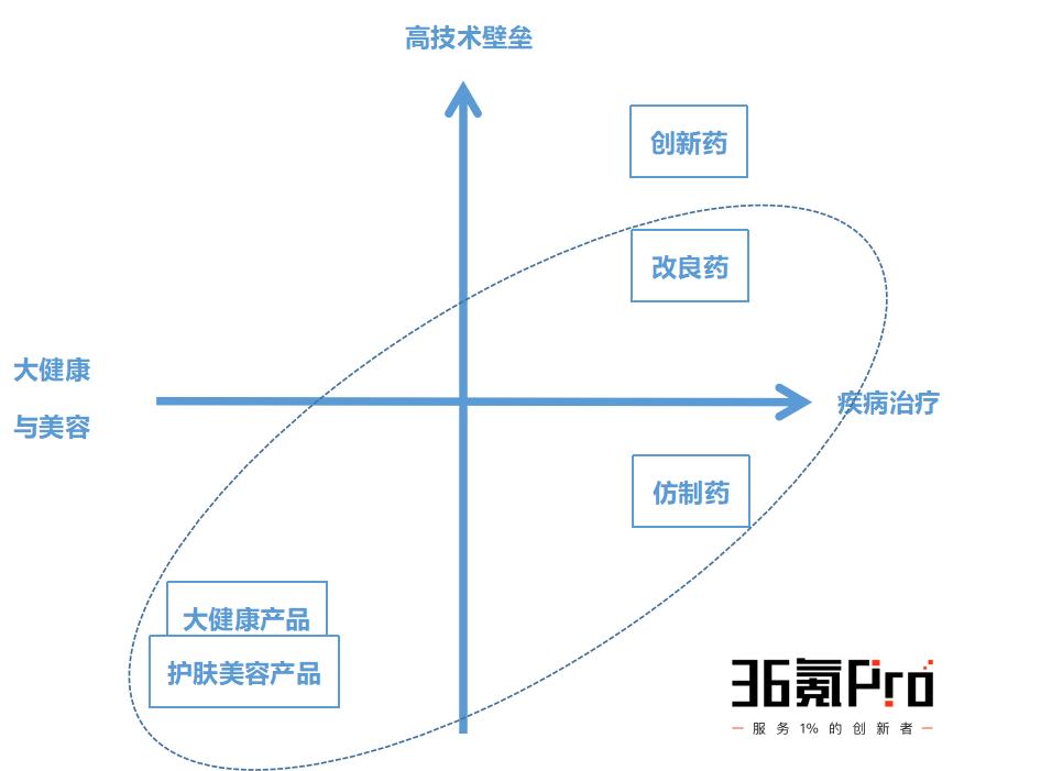 第三类企业的战略是同时覆盖药物和大健康产品。药物方面,以改良药或是仿制药为主,通过掌握核心技术形成一定的壁垒;大健康产品,可以为企业创造营收,获得更为稳健的现金流。