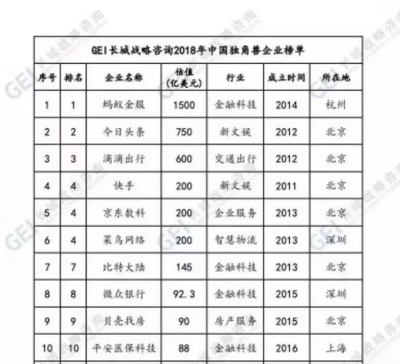 根据长城战略研究所数据显示,2018年中国独角兽数量达202家,总估值7446亿美元,平均估值36.9亿美元。这些独角兽中,有蚂蚁金服、今日头条、滴滴、知乎等没有明确上市计划的独角兽企业,也有白山云、虎扑、丽人丽妆等有明确上市计划,但是上市前景并不确定的企业。2019年注定还有很多新经济独角兽排队上市。