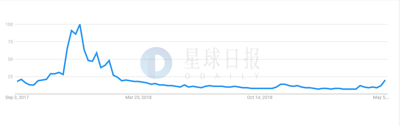 谷歌趋势(Google Trends)数据显示,关键词“bitcoin(比特币)”的搜索量最近创下了自2018年2月以来14个月的新高,当时比特币价格在在8000美元至1.1万美元之间。目前比特币价格约为8000美元。另据百度指数,近7天比特币搜索指数整体日均值为72105,环比上升138%。