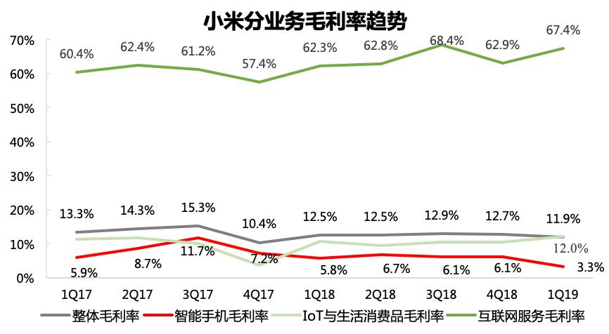 • 首先,远高于其他业务的毛利率水平给了小米更多的想象空间。