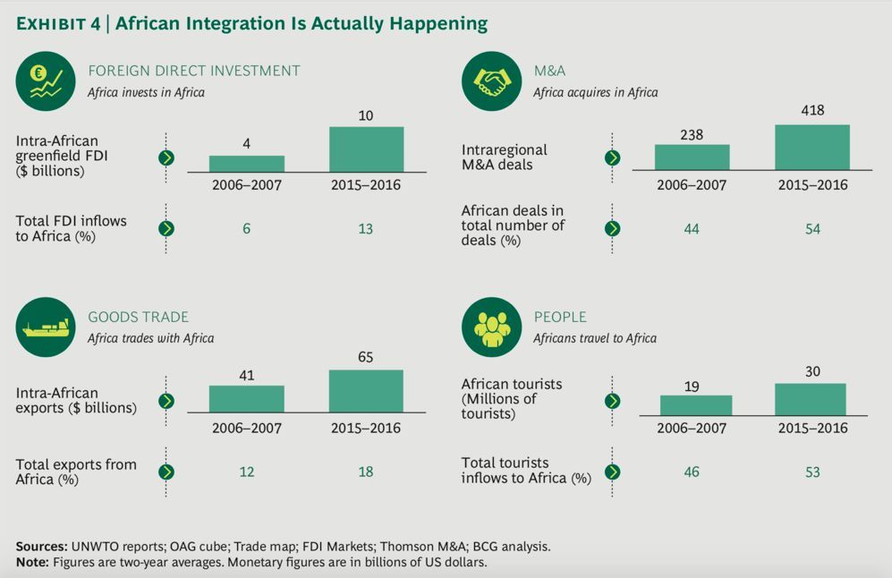 海外投资由2006-2007年的40亿美元增长到2015-2016年的100亿美元,非洲内部的大型并购交易也由2006-2007年的238起增加至2015-2016的418起,非洲地区内的出口贸易也在这10年间从410亿美元增加至650亿美元,非洲国家之间的游客数量由1900万人次增加至3000万人次。这将直接或间接地促进非洲物流行业的发展效率和规模。