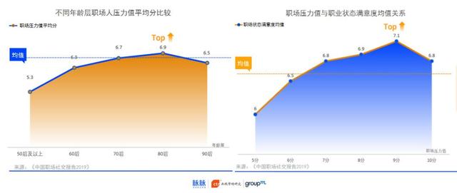 按照1-10分的标准进行打分,中国职场人的压力值平均分为6.7分。正是职场“中坚力量”的80后职场压力值最高(6.9分)。