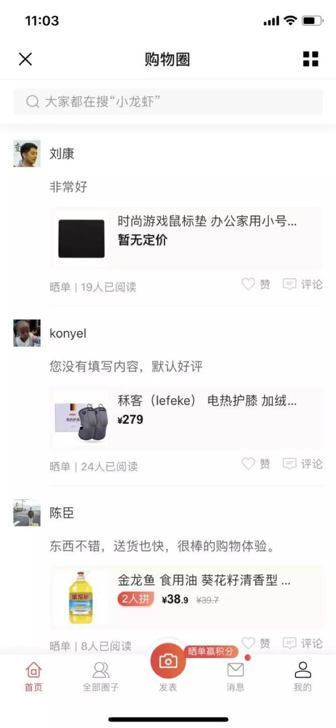在京东的微信小程序里打开“购物圈”,你会发现,曾经沉寂到只有一些官方维护的账号定期晒图之外,突然涌入了不少普通用户的身影。