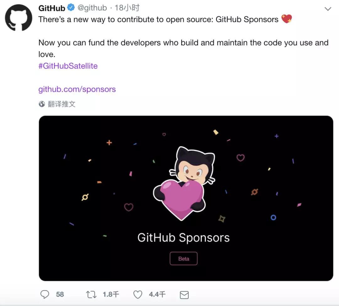 昨天,开源社区GitHub推出了一款新工具——测试版GitHub Sponsors。简单来说,就是GitHub用户可以打赏自己每天使用的开源项目了!