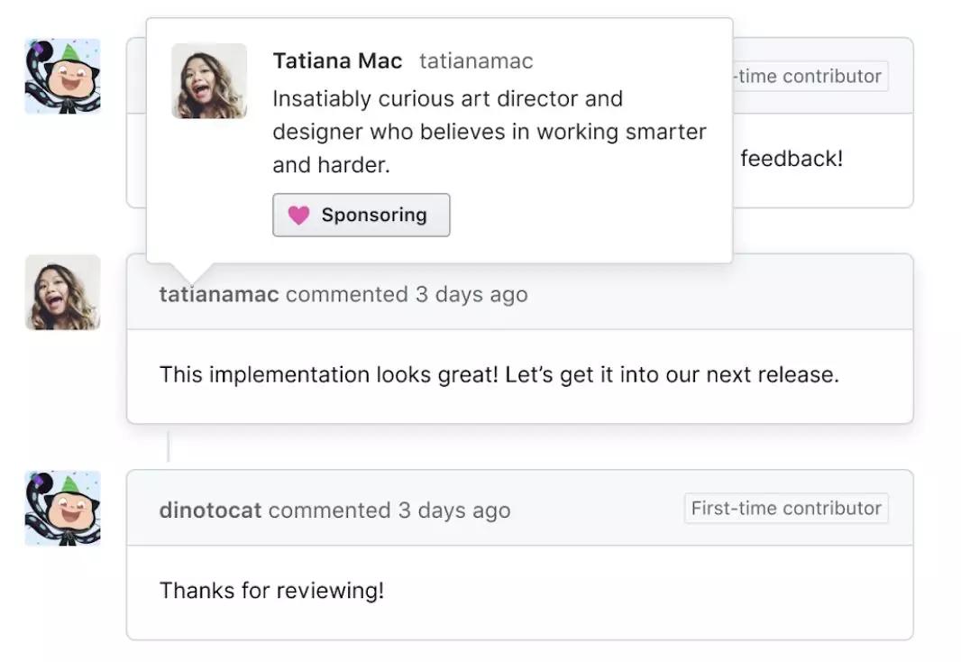 mushufasa:这看起来像是姗姗来迟的功能。将赞助订阅整合到核心体验中肯定会增加付款,看一下twitch的订阅/付款机制,Youtube刚刚复刻了这个机制。我想这将改变围绕OSS项目的基本动态,但不确定如何,也不确定是否都是积极的。