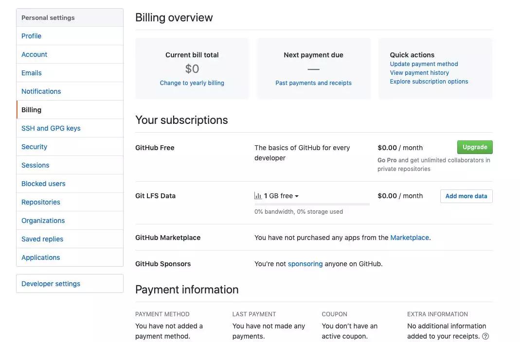 在个人中心-设置-账单中,会显示你的现有结算日期,付款方式和收据。支持信用卡和paypal,目前有少数开发者账号获得赞助资格,未来会有开放给更多对社区开发者。只要你有贡献,就可以申请接受赞助。