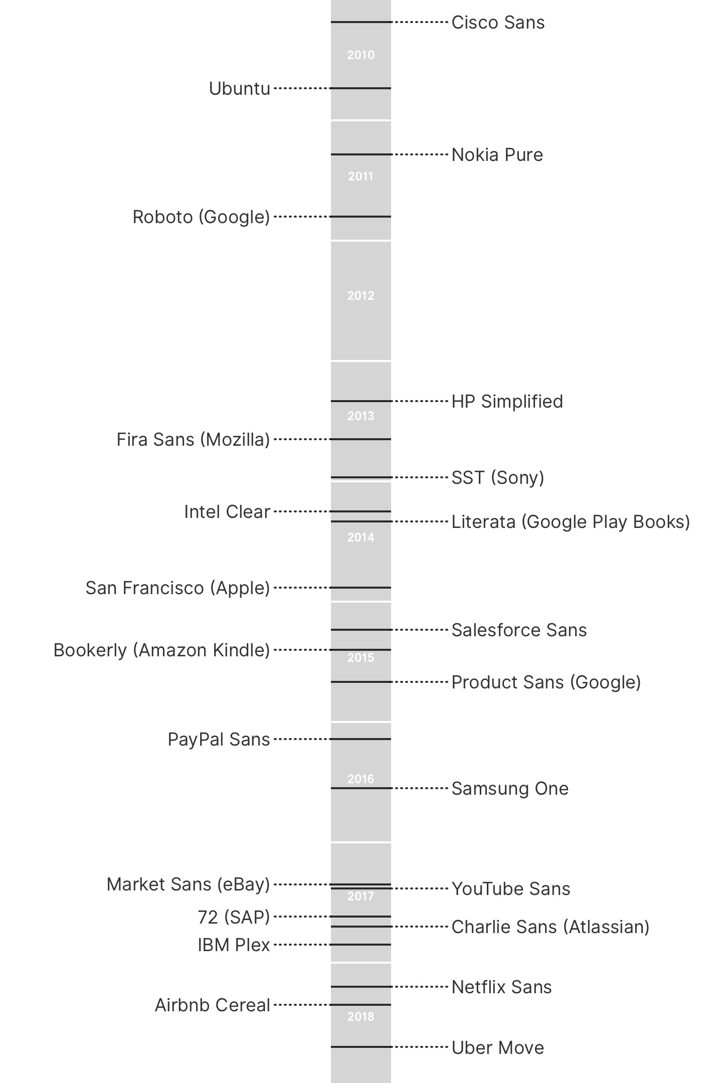最近十年著名科技公司推出的专属字体时间表。图片来源:Arun Venkatesan
