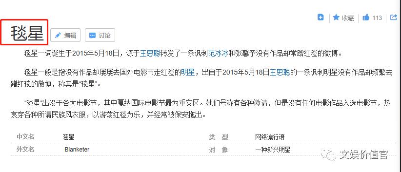 在百度词条中,甚至有专门的词汇解释:毯星一词诞生于2015年5月18日,源于王思聪转发了一条讽刺范冰冰和张馨予没有作品却常蹭红毯的微博。