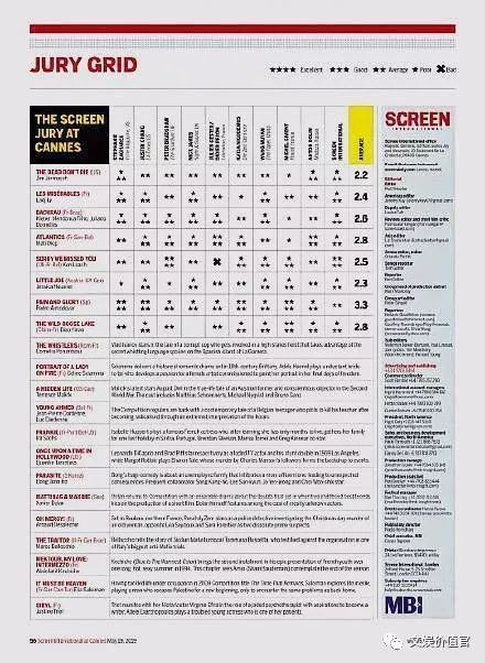戛纳的场刊评分是很严苛的,以4分满分,今年《南方车站的聚会》在戛纳首映中,场刊评分给出2.8的分数,算是不错的成绩;而阿莫多瓦的《痛苦与荣耀》拿下3.3分,属于爆款;法国导演玛蒂·迪奥普执导的《大西洋》也拿下了2.8的高分;贾木许的《丧尸未逝》2.2分;大导演昆汀的《好莱坞往事》则拿下3分的成绩;韩国导演奉俊昊的《寄生虫》获得本次最高分3.4分的好成绩。