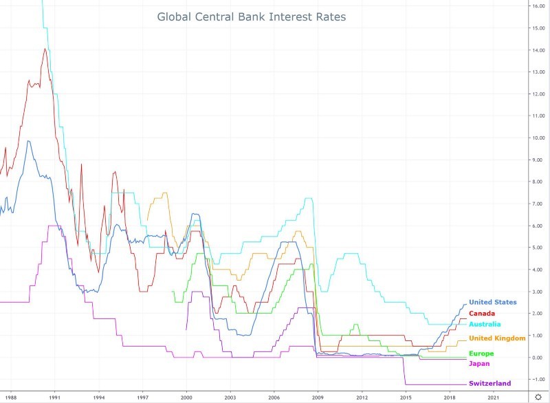 在全球央行利率政策的逐底竞争中,美元是唯一一个可供稳定币钉住的可行货币。要想让Facebook的货币对多个国家的货币保持稳定的价值,没有维持和驾驭全球利率环境的能力是不行的。随着澳大利亚和加拿大等利率居第二位的国家重新考虑降息,以及欧洲进一步冒险进入负利率领域,美国的货币体系当前居然“一枝独秀”。