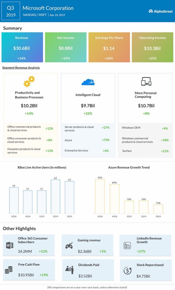 让我们来看看微软的不同业务,并分析它们的表现。微软的收入来自这三个不同的领域: