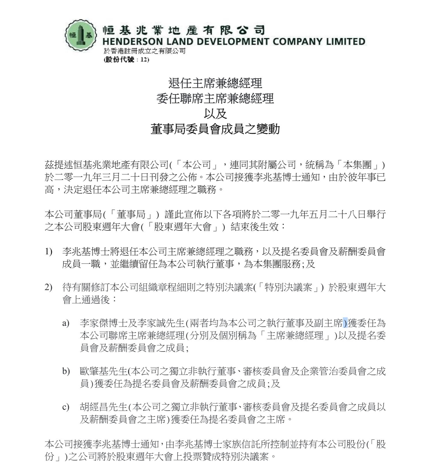 据恒基内部人士称,这次拿地是“给小老板的见面礼”。“小老板”指李家杰及李家诚。5月27日晚,恒基兆业发布公告称,李兆基因为年事已高,决定退任主席兼总经理,其子李家杰与李家诚获委任为公司联席主席兼总经理。这个消息在3月份开始发酵,5月份正式披露的一天之内,新上任的联席主席就收到了来自北京的“见面礼”。