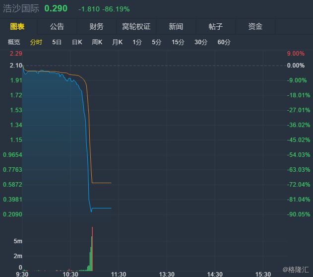 浩沙国际 股价「跳水」