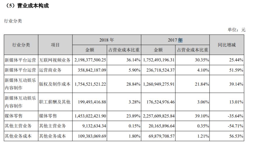 芒果TV营业成本构成