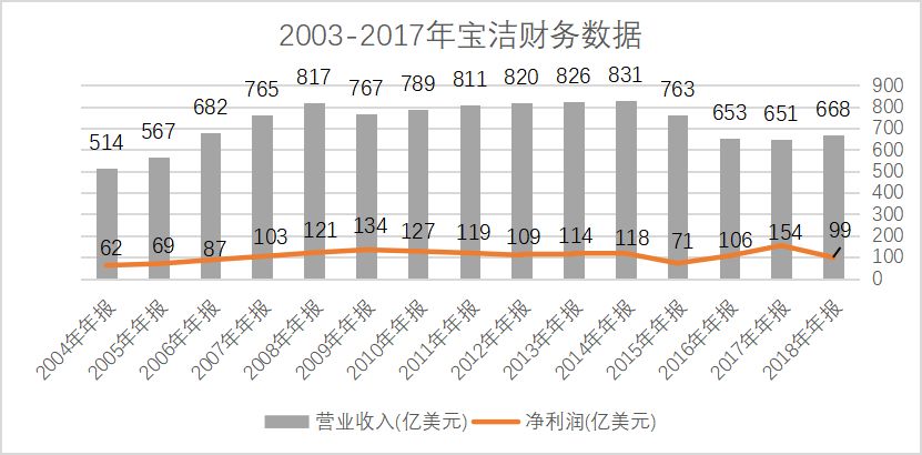 然而,看似漂亮的数据背后是宝洁的隐忧。从2014年宝洁营收到达841亿美元顶峰之后,随之而来的就是盛极而衰。