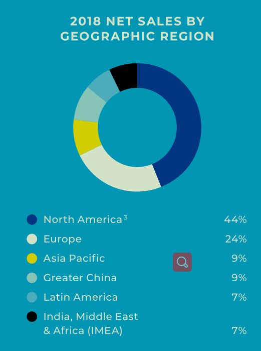 | 图:宝洁2018财年年报-分区域营收占比