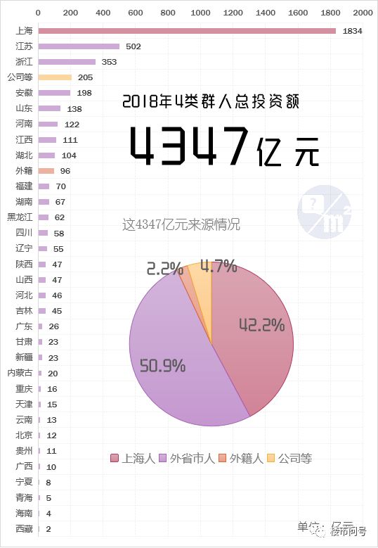 投资总量是浙江比较多,但是个体数量来看江苏明显占据大头,一二三四五都来自江苏,浙江最多的行业只能排到第六。这说明什么事情,说明最爱买上海的人都是江苏人,但是购买力是不足的,位于上海购买力的中低区