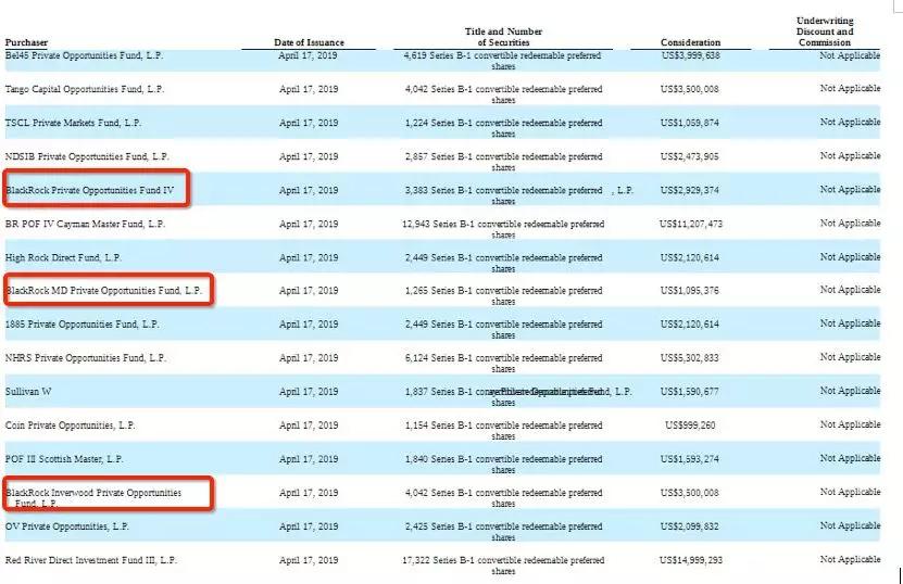 而在瑞幸咖啡的招股书中,认购该公司股权的则为贝莱德旗下的私募基金BlackRock Private Opportunities Fund、BlackRock MD Private Oppotunitise Fund、BlackRock Inverwood Rrivate Opportunites Fund、BlackRock MSV Private Opportunities Foud。