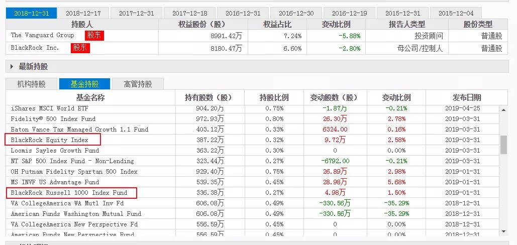 但实际上,贝莱德是通过旗下BlackRockEquityIndex和BlackRockRussell1000IndexFund两支指数基金投资的。