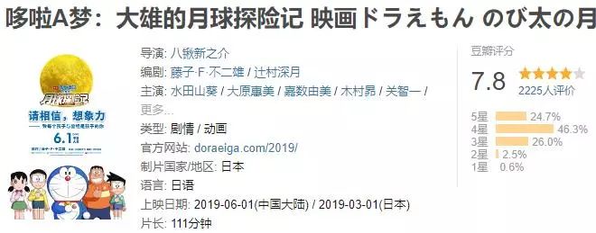 《哆啦A梦:大雄的月球探险记》,这部曾于年初在日本本土就曾连续6周拿下周末票房榜冠军的电影,或许可能借此机会打破近几年同系列电影不温不火的僵局,带来一些新的思考与启示。