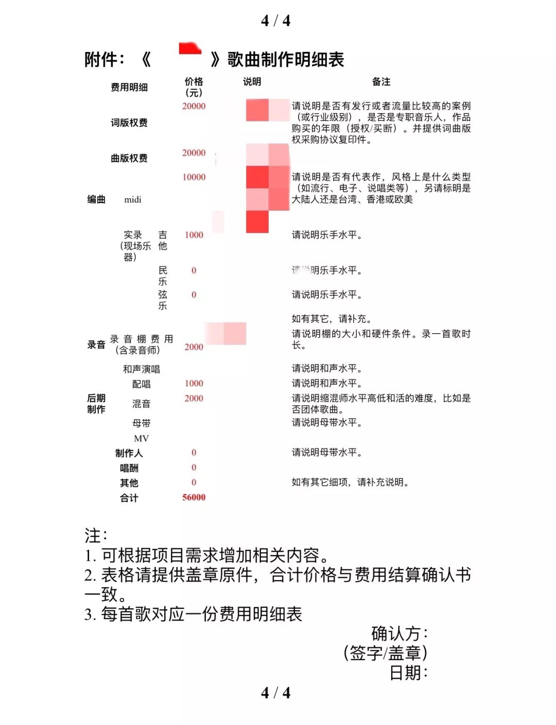 虽然酷狗给出的这份定价单非常符合商业采购逻辑,但是,部分音乐商家却不这么认为。他们认为在创作一首歌的时候还存在许多抽象的隐形劳动,比如灵感,故事,情感,甚至一段旋律的灵光乍现,也许就能决定了一首歌最终的呈现效果,以及后续能不能得到良好传播。在他们看来,一首歌曲的价格,并不能单纯以作词作曲人的名气来判断。