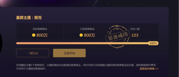 1梦想音符10块钱,陌雪排名第一的粉丝众筹了1.8万