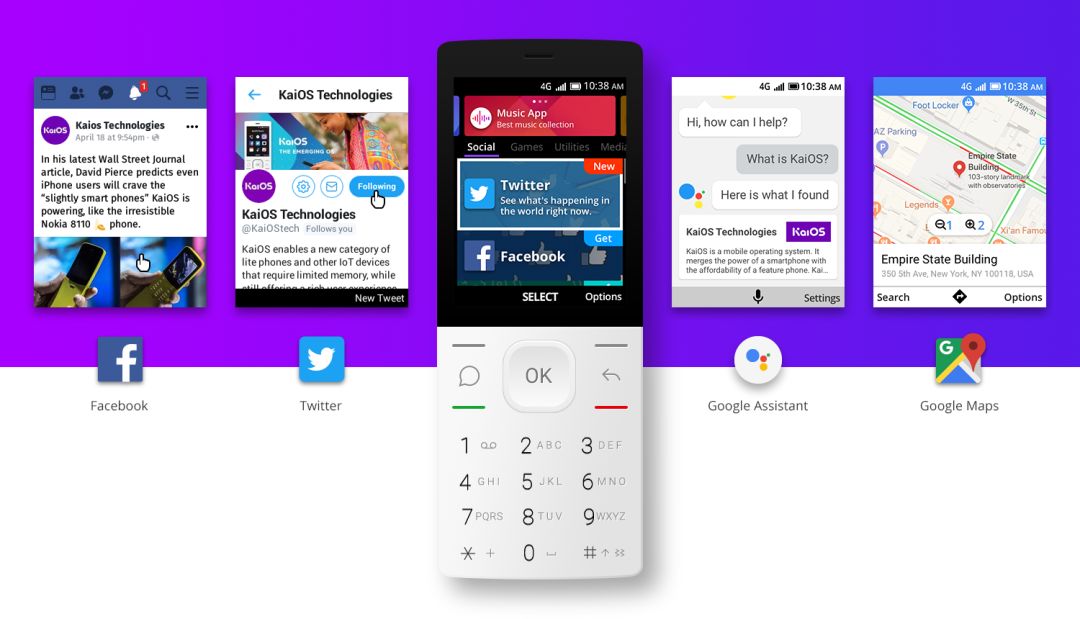 之后的2018年,随着谷歌成为大股东之一,KaiOS的使命也随即变成了:为谷歌普及全家桶服务的“小助手”。