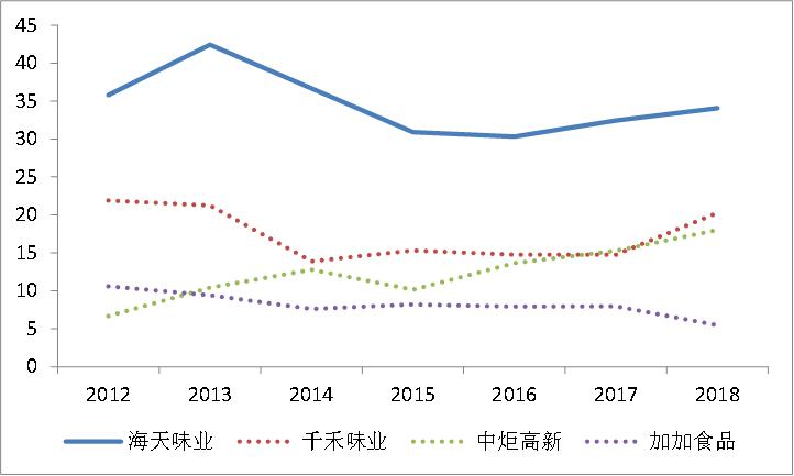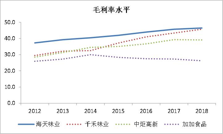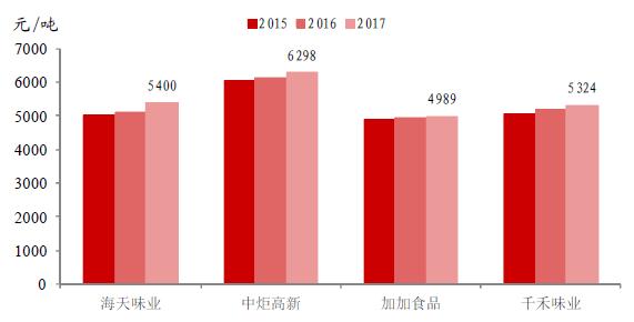 这个可以在酱油成本和销售价格中找到明确的证据。以2015-2017年的数据为例,海天酱油的吨成本维持在2700元左右,是千禾味业、加加食品中最低的,但其销售价格却保持较为“克制”。