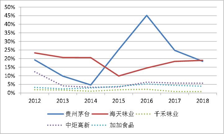 可以对标的企业是贵州茅台,海天与茅台的这一比例均值均在20%左右,但海天的波动更小,这可能与调味品属于必选消费,高端白酒属于可选消费有关。