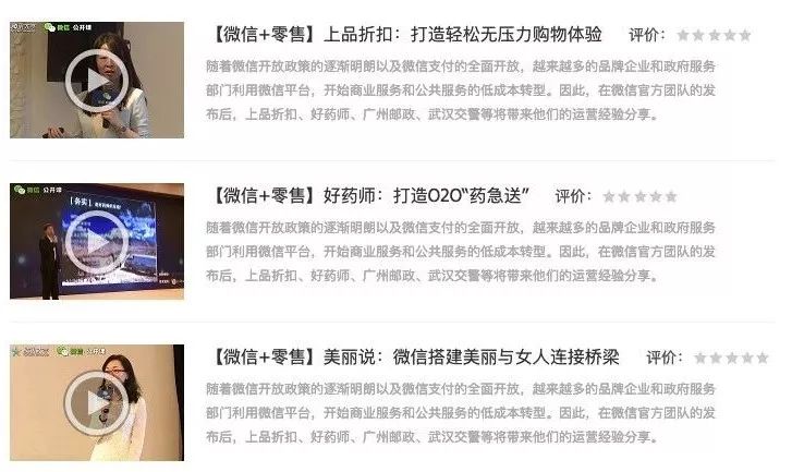 截图中只展示了一小部分,但我们也能看到,微信每一季的案例,都涵盖多个角度、多种场景,包含上中下各层级。比如一个“扫码支付+会员”的体系,就通过了六七个案例来讲透。