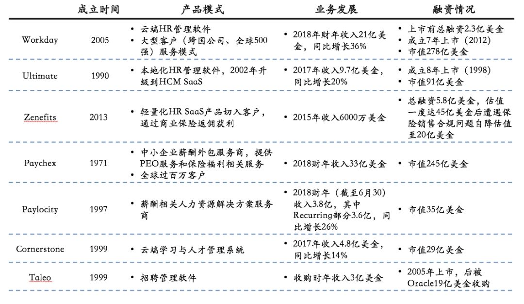 另外,HR SaaS产品天然包含员工信息和员工行为,有机会做C端相关服务转化,如美国Zenefits通过免费产品快速切入,然后通过企业员工商保销售来赚钱,近年来崛起的Namely,Justworks,Gusto等也遵循同样的逻辑。