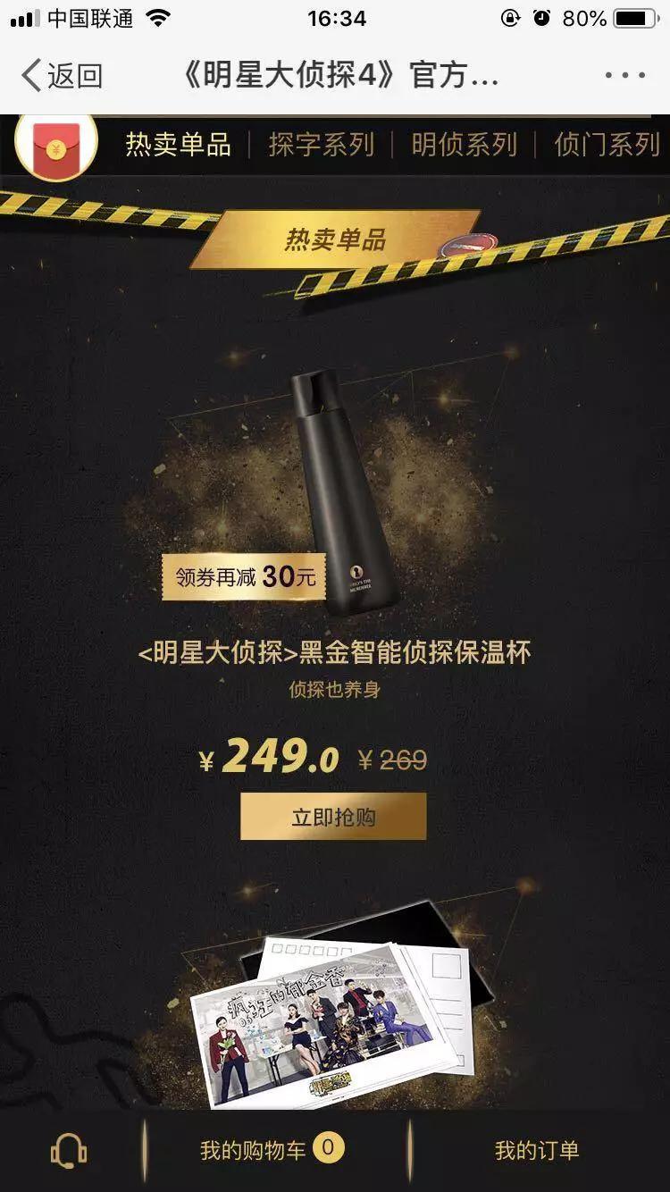芒果TV的《明星大侦探》已是常青IP,今年的第四季也着手推出了衍生产品。从IP视觉而言芒果TV打造了侦探黑金系列作为基础商品;针对IP粉丝产出了四季卷宗明信片、侦探日历等文创产品,明信片在上线后卖了4000多套;而聚焦到年轻受众芒果TV开发了“探”字潮品系列。