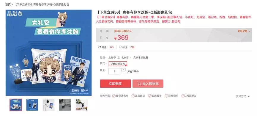 其中不乏销量不错的衍生周边,据商城成交记录显示,其官方收藏签名卡的销量超过800,在售的练习生Q版形象礼包价格高达369元,但销量均过500,特别是最终C位出道的选手李汶翰的应援礼包,销量直接破了700。