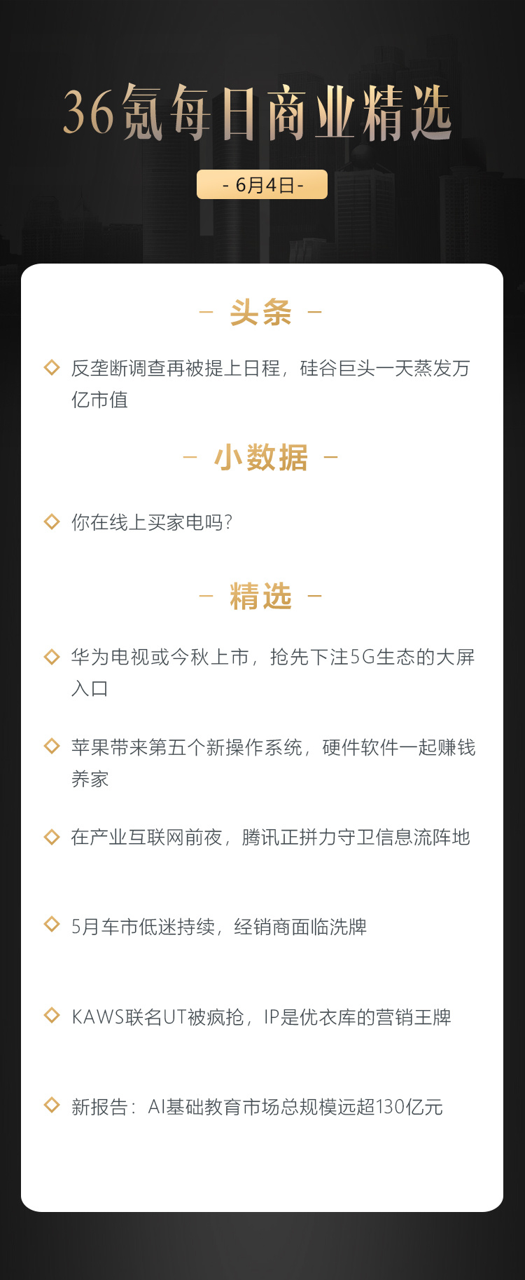本文来自36氪付费栏目《36氪每日商业精选》——6月4日