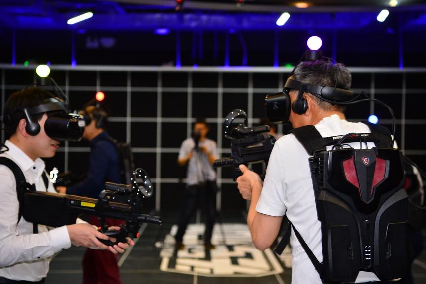 西瓜互娱团队自主研发的 IMPS (Infinite Multi-Target Positioning System) 超大空间多目标定位系统,无需线路传输,背包和主机之间的数据通过 Wi-Fi 传输,能够实现 6 自由度、同时精准定位 10 人,支持 400 平米空间内多人多组游戏对战。这组方案的造价成本,比进口设备低 5-10 倍—— 这一 VR 大空间多人实时互动产品,是头号玩咖能在线下快速扩张的基石之一。
